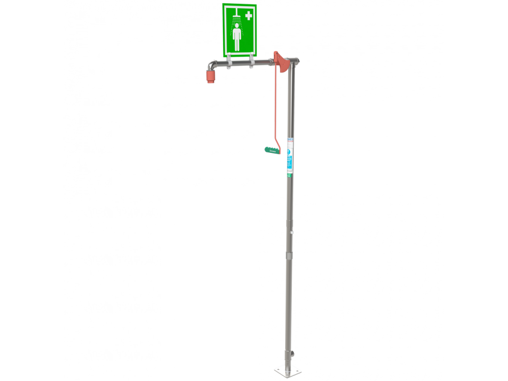 Fűtetlen mentesítő zuhany. Megrendelhető galvanizált vagy rozsdamentes acélból Külön rendelhető tartozék: piktogram és felfogókeret, műanyag vagy rozsdamentes acél zuhanyrózsa, triflex kézi zuhany, lábpedál és lábrács, világítás, foglaltság jelző kapcsoló, kabin. Bejövő vízvezeték csatlakozás: 1 1/4 colos belső mentes Minimális nyomás: 1,5 bar (kg/cm2)
