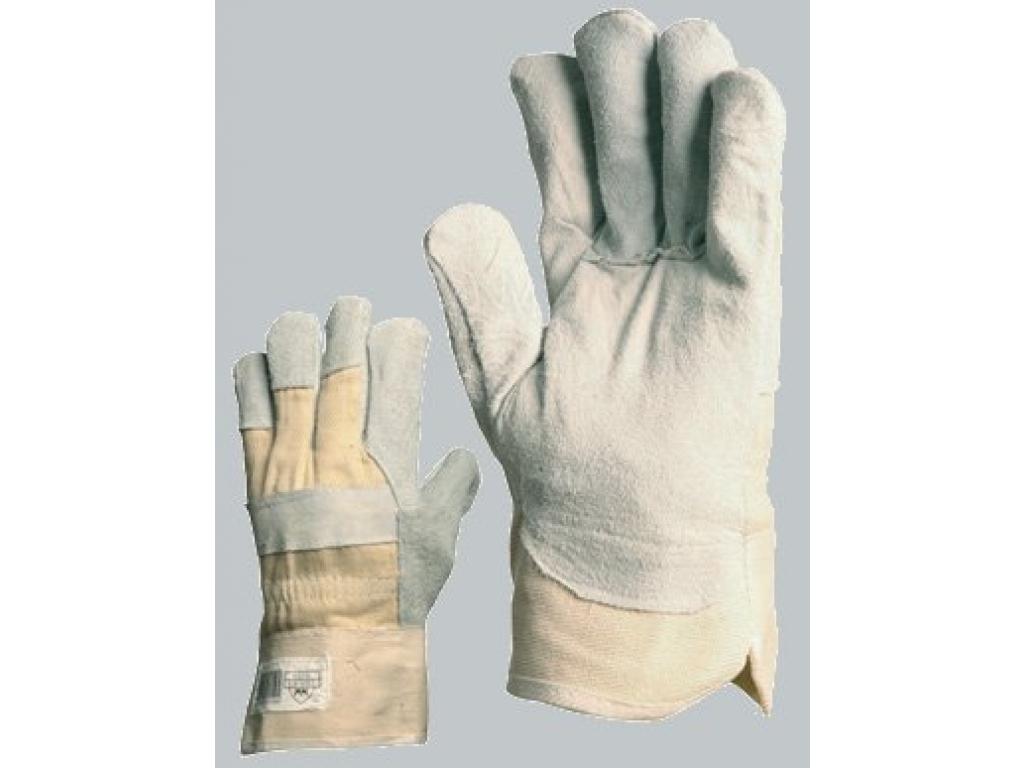 Szürke marhahasíték, vászon kézháttal, pamut tenyérbélés, 10-es méret.