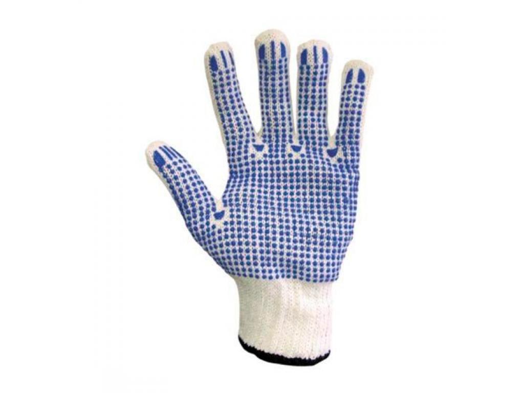 Kötött PVC-vel pöttyözött cérnakesztyű, jó kopásálló, 7,10-es méret.
