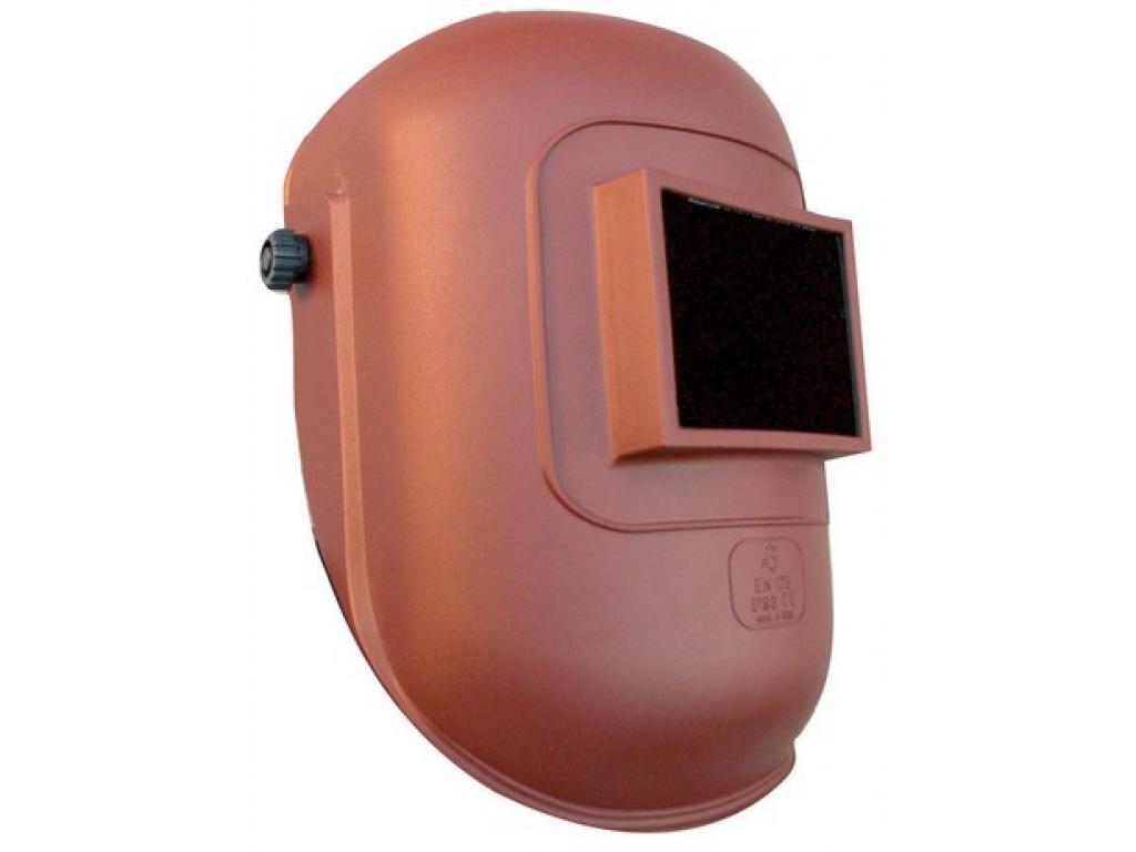 Polipropilén anyagú fejpajzs, 90x100 mm-es hegesztőüveggel. Állítható fejkosár, 255 gr súly.