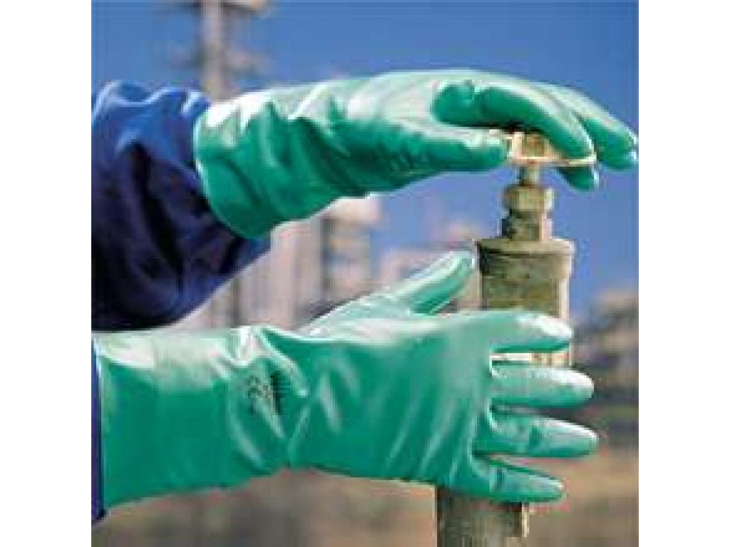 Vegyszerálló védőkesztyű csúszásmentesített tenyérrel. Kényelmes pamut belsővel rendelkezik. Ideális a vegyipar, olajipar és az élelmiszeripar számára. Méret: S-XXL