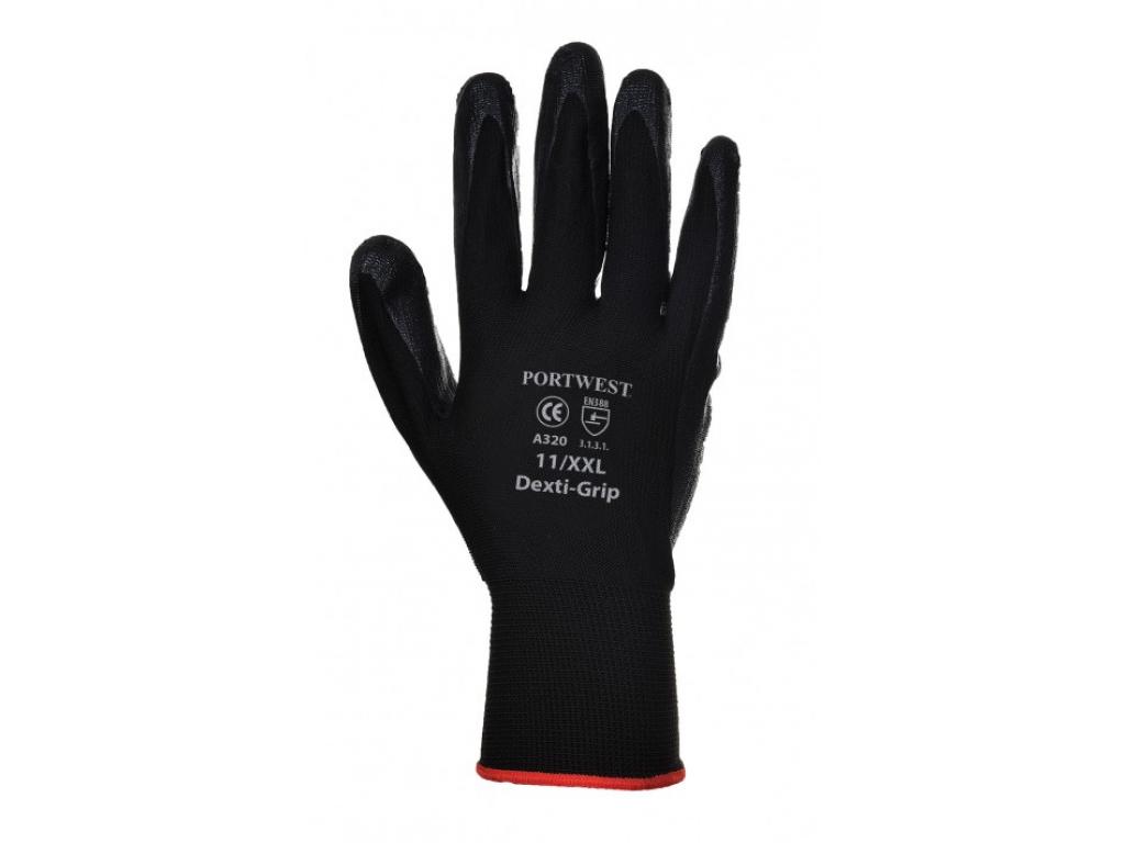 Ökölcsontig mártott, fekete nitril kesztyű, szellőző hátrész, kényelmesen igazodik a kézfejre, gumírozott mandzsetta, mechanikai ártalmak ellen. EU szabvány: EN388
