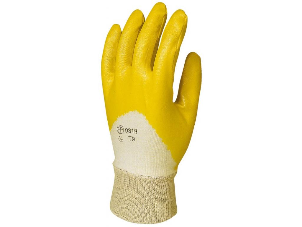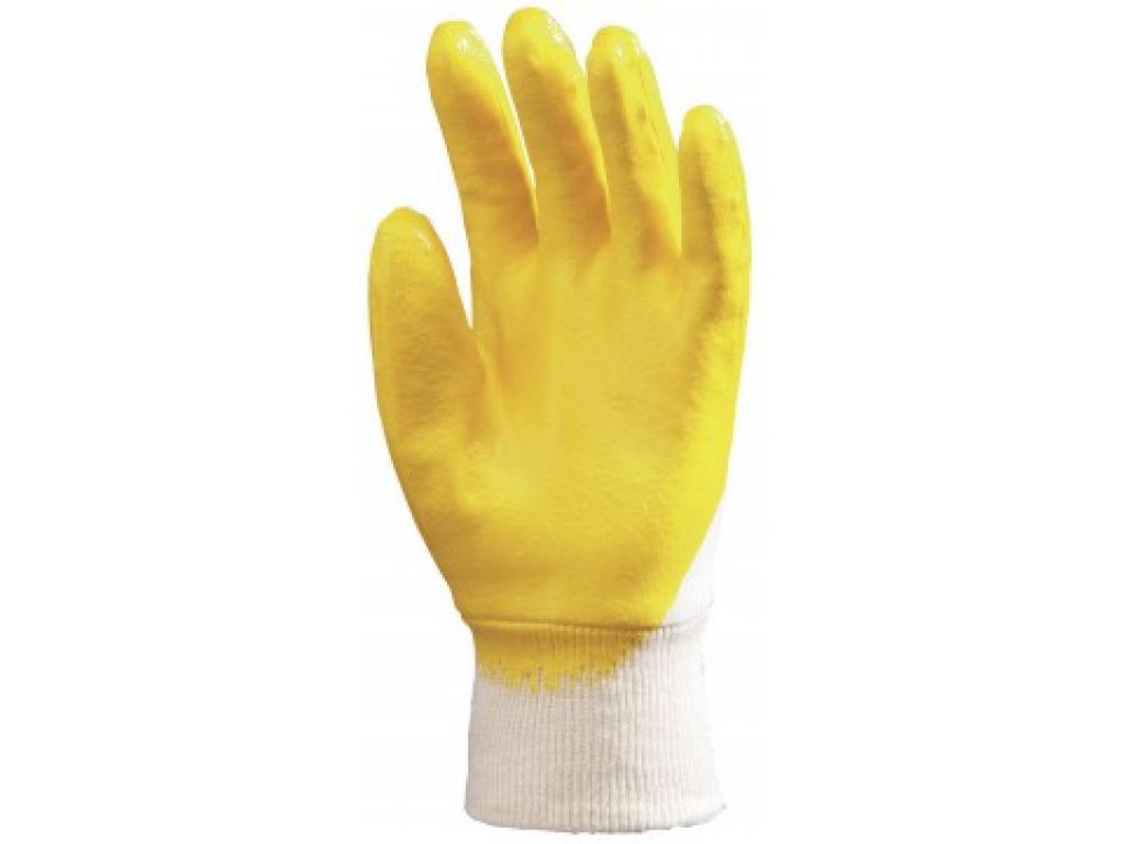Pamut jersey alapon mártott nitril mechanikai kesztyű könnyített kézfejjel és gumírozott mandzsettával 27 cm.