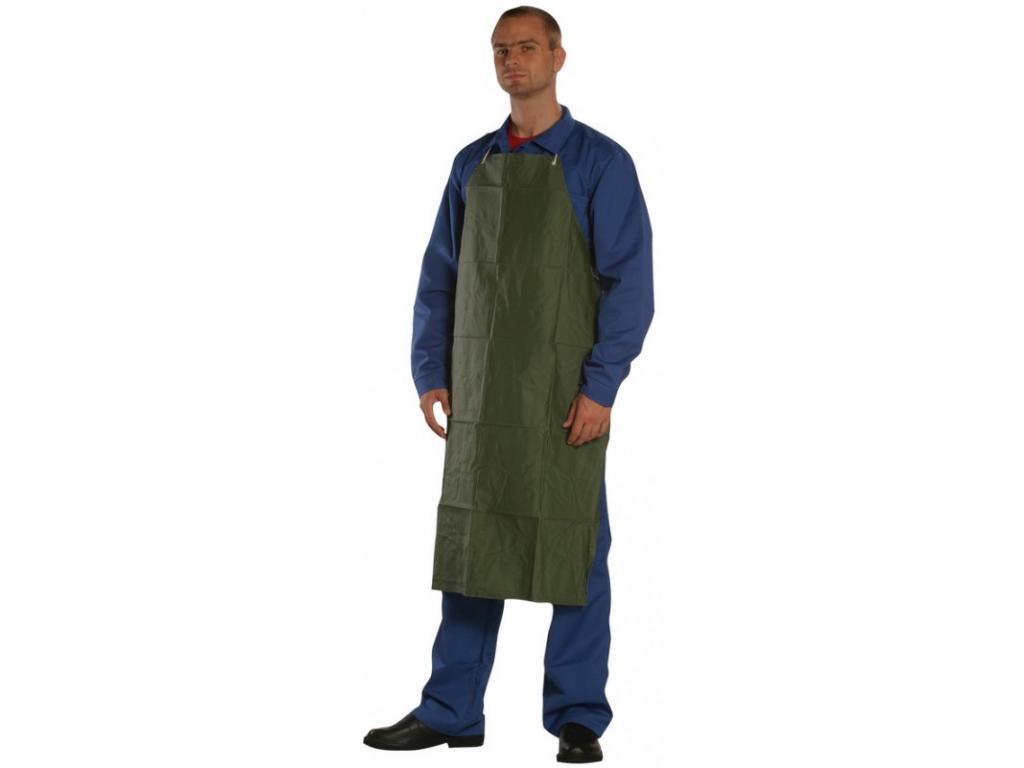Kötény, PVC bevonatú polieszter 110x75cm, zöld, fehér 0,32 mm vastag.