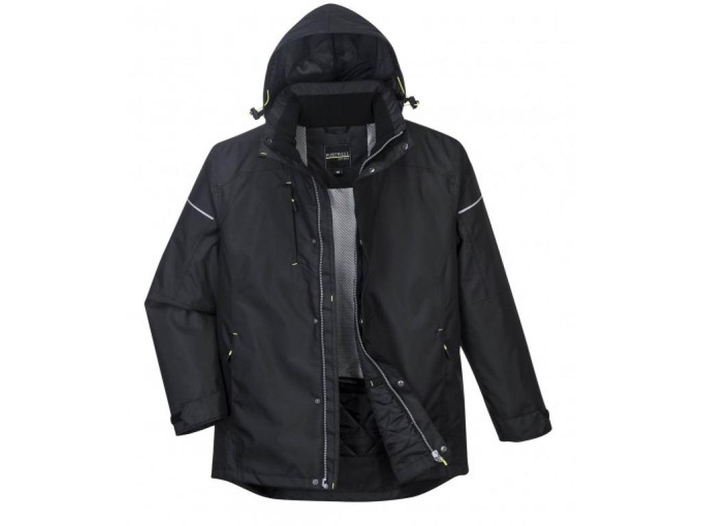 Portwest PW362 téli kabát fekete színben fényvisszaverő csíkkal