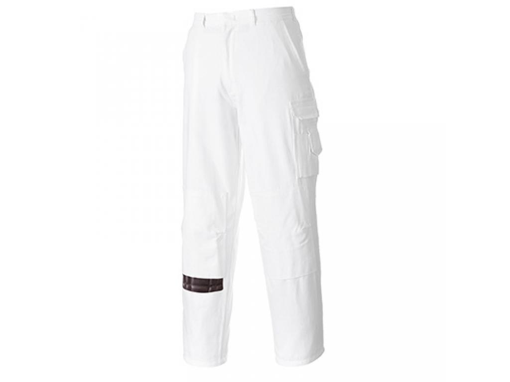 Fehér 100% pamut. Oldalzsebbel, mobiltelefon tartóval. A térdénél megerősített.