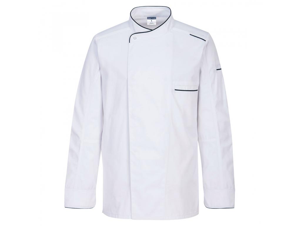 Ez a séfkabát könnyű anyagból készült, és modern, karcsúbb sziluettet kínál ergonomikus illeszkedéssel. A kabát jellemzői közé tartozik a dupla mellkasú, rejtett szegecses elülső záródás, a zippzáras oldalzseb és a nagy MeshAir Pro panelek a háton és a hónaljban a kiváló légáteresztő képesség érdekében. Méret: S-3XL