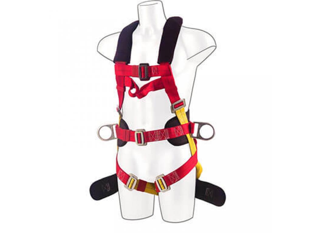 Univerzális teljes testheveder, állítható, extra komfortos párnázott ülő és hátrésszel. Könnyen és gyorsan rögzíthető, beállítható. Hátsó D-gyűrű ponttal, két mellkas hurok ponttal és két munkahelyzet beállító D-gyűrű ponttal. (Magyarországon 5 pontos testhevederként ismert kialakítás).