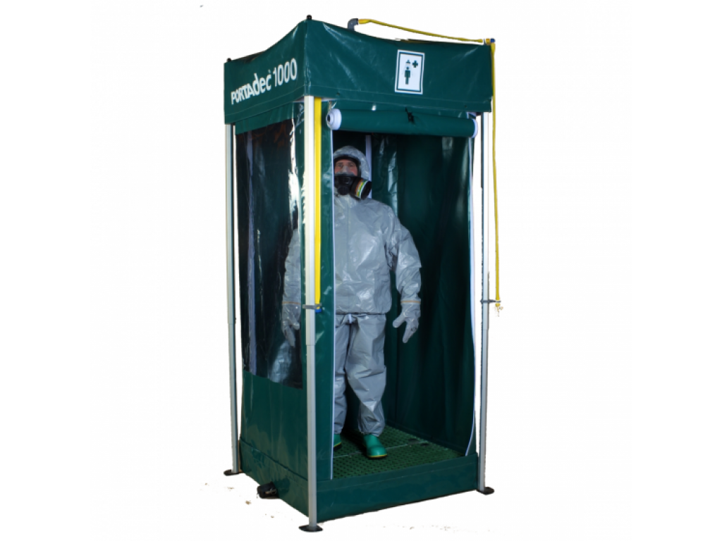 Hordozható, gyorsan felállítható mentesítő sátor és vészzuhany. Vegyszeradagolóval használható